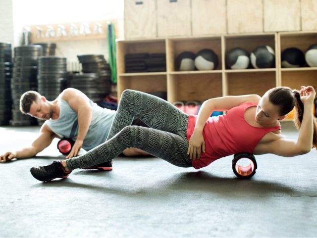 Bevægelsen: Liggende på ryggen, bring rullen til bunden af skulderbladene med hænderne bag hovedet, fingrene forsigtigt flettet for at støtte halsen. Placer dine fødder parallelt og hoftebredde afstand fra hinanden og hold din tush ned på måtten. Inhalér som du bøjer din thoracic (eller midten til øverst) tilbage over rullen. Hold dine hænder bag hovedet mens du strækker forsiden af nakken for at frigøre spændinger. Udånd og krølle op igen, klemme og fladgøre hele luften ud af din mave, organer og lunger for at rydde ud kuldioxid, hvilket giver plads til frisk ilt for at fylde lungerne. Dette hjælper også med at fjerne spændinger og spændinger i tarmen ved at ringe organerne ud som et vådt håndklæde, mens de fladder i mavemusklerne.